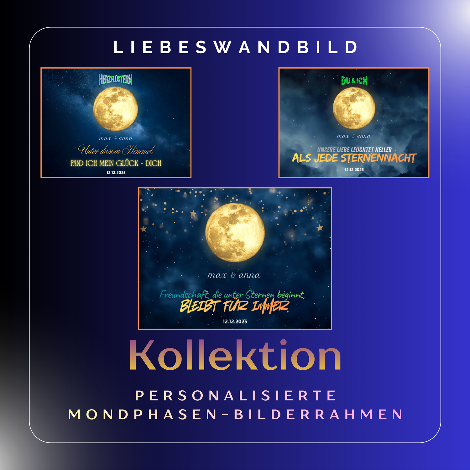 Personalisiertes Mondphasen-Wandbild | "Unsere Liebe leuchtet heller"