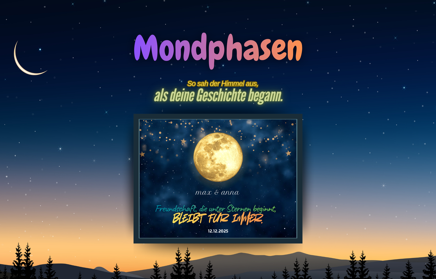 Personalisiertes Mondphasen-Wandbild | "Unter diesem Himmel fand ich mein Glück – dich"